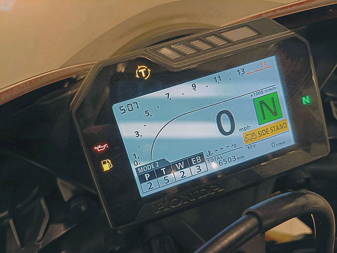 Если вам нужен очень быстрый мотоцикл, вы попали по адресу. В моторе этого Honda Fireblade живут 215 лошадиных сил. В природе существуют немного более мощные спортбайки. Но когда речь идёт о мощностях за 200, плюс-минус немного уже не имеют большого значения. Того, что есть достаточно, чтобы очень быстро набирать сверхъестественные скорости. За 200 километров в час “Фаер” разгоняется легко и непринуждённо, даже не замечаешь. А если подержать газ ещё немного, будет и под 300. Чтобы такая ярость не убила мотоциклиста и Хонда не потеряла выгодного клиента, в мотоцикле предусмотрена продвинутая электроника: трекшн контроль, гоночнвя АБС, настраиваемые режимы. Управляется электроника с не по-спортивному красивой цветной приборки.