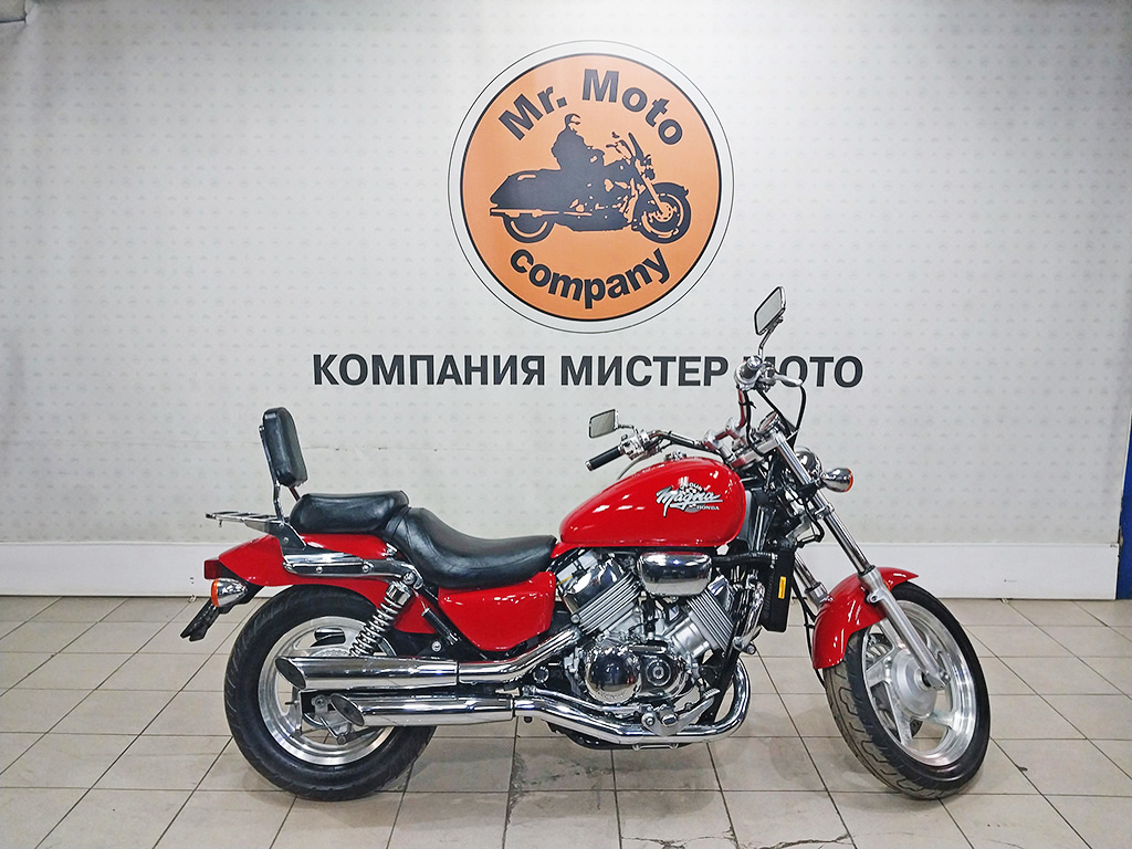 Honda VF750 Magna - звезда круизерного мира конца прошлого века. Японцы нарушили канон, поставили V-образный мотор. Но не традиционную. двухстволку, а четырехцилиндровый. Да еще жидкостного охлаждение. В японском варианте он, в зависимости от поколения, выдавал от 75 до 77 лошадиных сил. Аналогичным мотором с небольшими отличиями в настройках комплектовались нейкед VF750 Sabre и спорт-турер VF750F. Едет Магна соответственно, шустрее среднекубатурных круизеров тех лет.