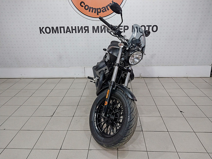 Moto Guzzi V9 - не самый быстрый мотоцикл. Он в первую очередь про стиль и настроение. Одеться в классическую экипировку (у нас в отделе экипировки есть для этого винтажные шлемы HJC V-серии и боты Stylmartin) и кататься, ловя ощущения от посадки, вибраций, внешности. Впрочем, каждый день ездить на работу на нем тоже можно. он неплохо маневрирует в потоке, не утомляет избыточными весом и габаритами, на нем удобно сидеть. Можно съездить и в путешествие. Но не рассчитывать на большой дневной километраж. Эта модель называется Moto Guzzi V9 Bobber. Она отличается от базовой толстым передним колесом уменьшенного диаметра, рулём, отделкой. Чтобы не дуло, японец поставил на него ветровое стекло.