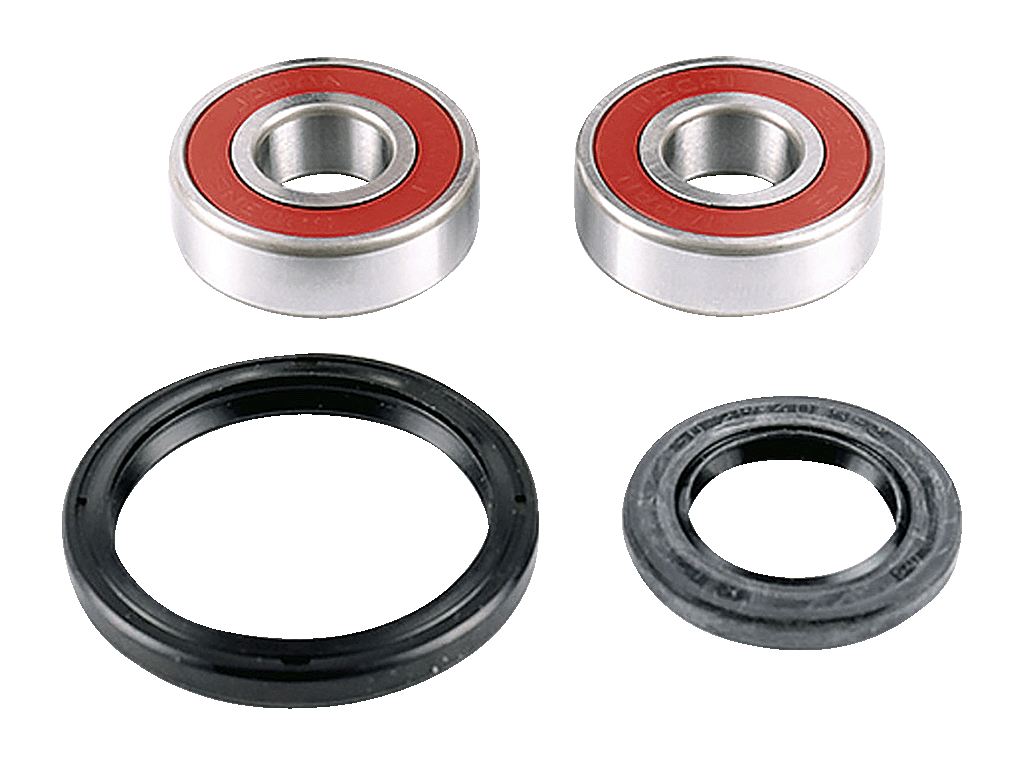 Комплект подшипников в колесо мотоцикла. Комплект включает в себя в случае применимости на переднее колесо: два подшипника и пыльники, если они предусмотрены конструкцией мотоцикла; в случае применимости на заднее колесо: два или три подшипника (третий подшипник для установки в крепление задней звезды) и пыльники.