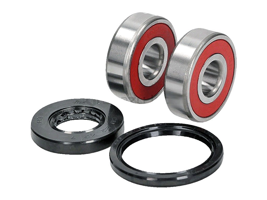 Комплект подшипников в колесо мотоцикла. Комплект включает в себя в случае применимости на переднее колесо: два подшипника и пыльники, если они предусмотрены конструкцией мотоцикла; в случае применимости на заднее колесо: два или три подшипника (третий подшипник для установки в крепление задней звезды) и пыльники.