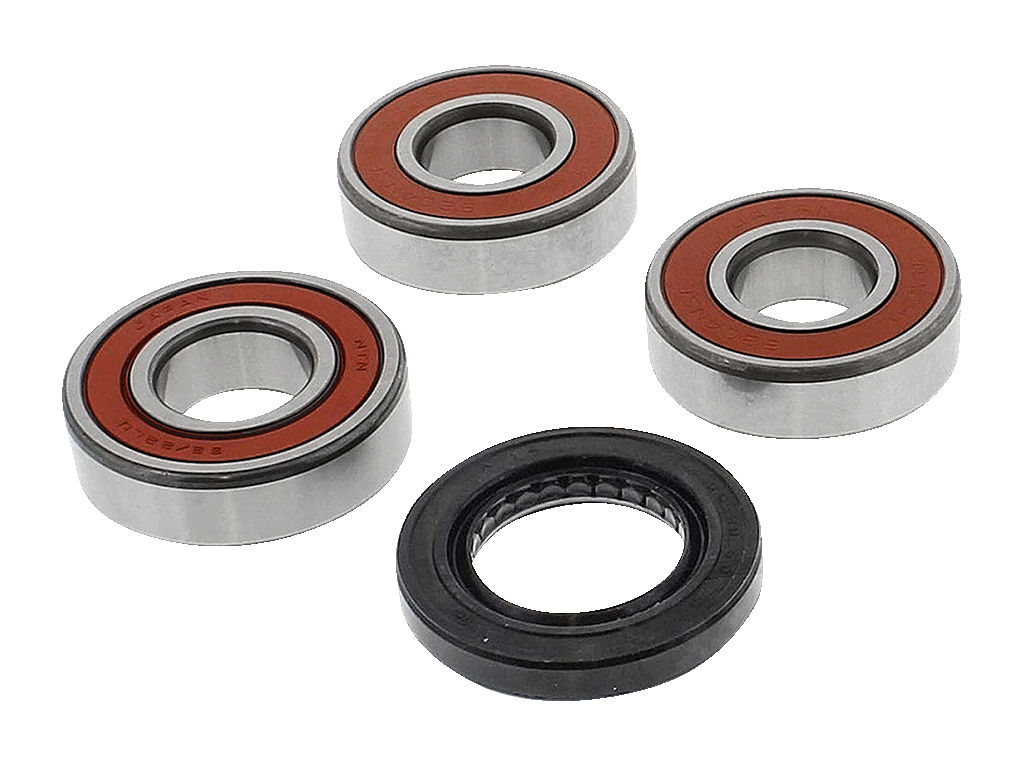 Комплект подшипников в колесо мотоцикла. Комплект включает в себя в случае применимости на переднее колесо: два подшипника и пыльники, если они предусмотрены конструкцией мотоцикла; в случае применимости на заднее колесо: два или три подшипника (третий подшипник для установки в крепление задней звезды) и пыльники.