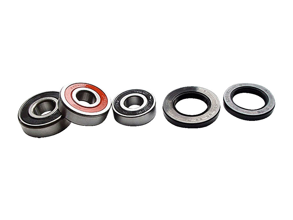 Комплект подшипников в колесо мотоцикла. Комплект включает в себя в случае применимости на переднее колесо: два подшипника и пыльники, если они предусмотрены конструкцией мотоцикла; в случае применимости на заднее колесо: два или три подшипника (третий подшипник для установки в крепление задней звезды) и пыльники.