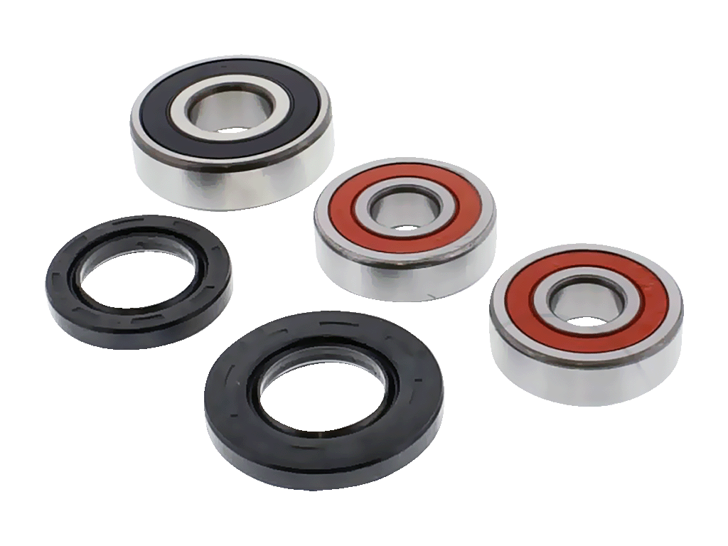Комплект подшипников в колесо мотоцикла. Комплект включает в себя в случае применимости на переднее колесо: два подшипника и пыльники, если они предусмотрены конструкцией мотоцикла; в случае применимости на заднее колесо: два или три подшипника (третий подшипник для установки в крепление задней звезды) и пыльники.
