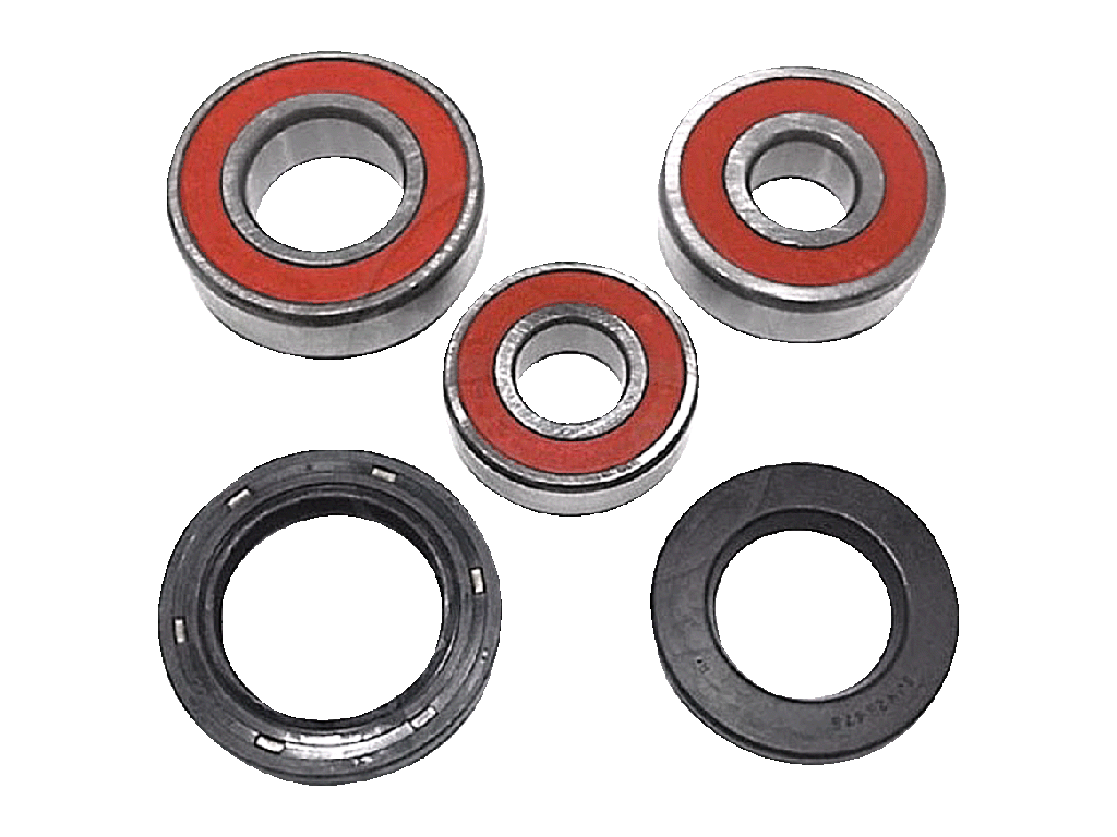 Комплект подшипников в колесо мотоцикла. Комплект включает в себя в случае применимости на переднее колесо: два подшипника и пыльники, если они предусмотрены конструкцией мотоцикла; в случае применимости на заднее колесо: два или три подшипника (третий подшипник для установки в крепление задней звезды) и пыльники.