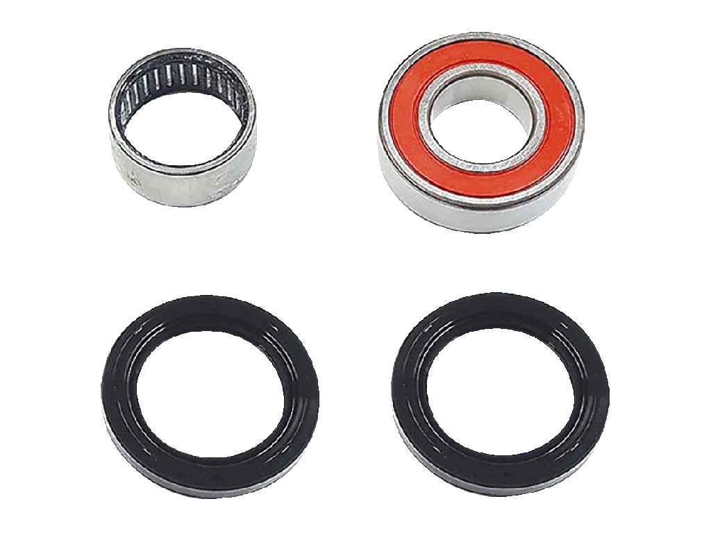 Комплект подшипников в колесо мотоцикла. Комплект включает в себя в случае применимости на переднее колесо: два подшипника и пыльники, если они предусмотрены конструкцией мотоцикла; в случае применимости на заднее колесо: два или три подшипника (третий подшипник для установки в крепление задней звезды) и пыльники.