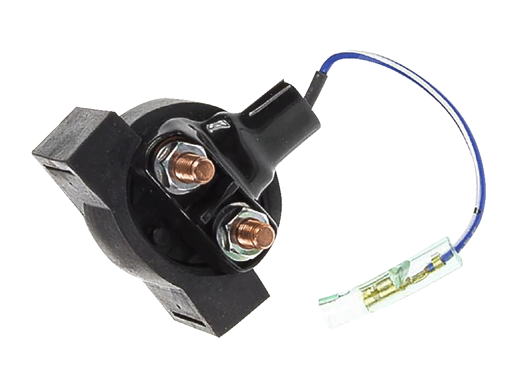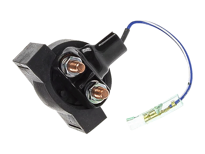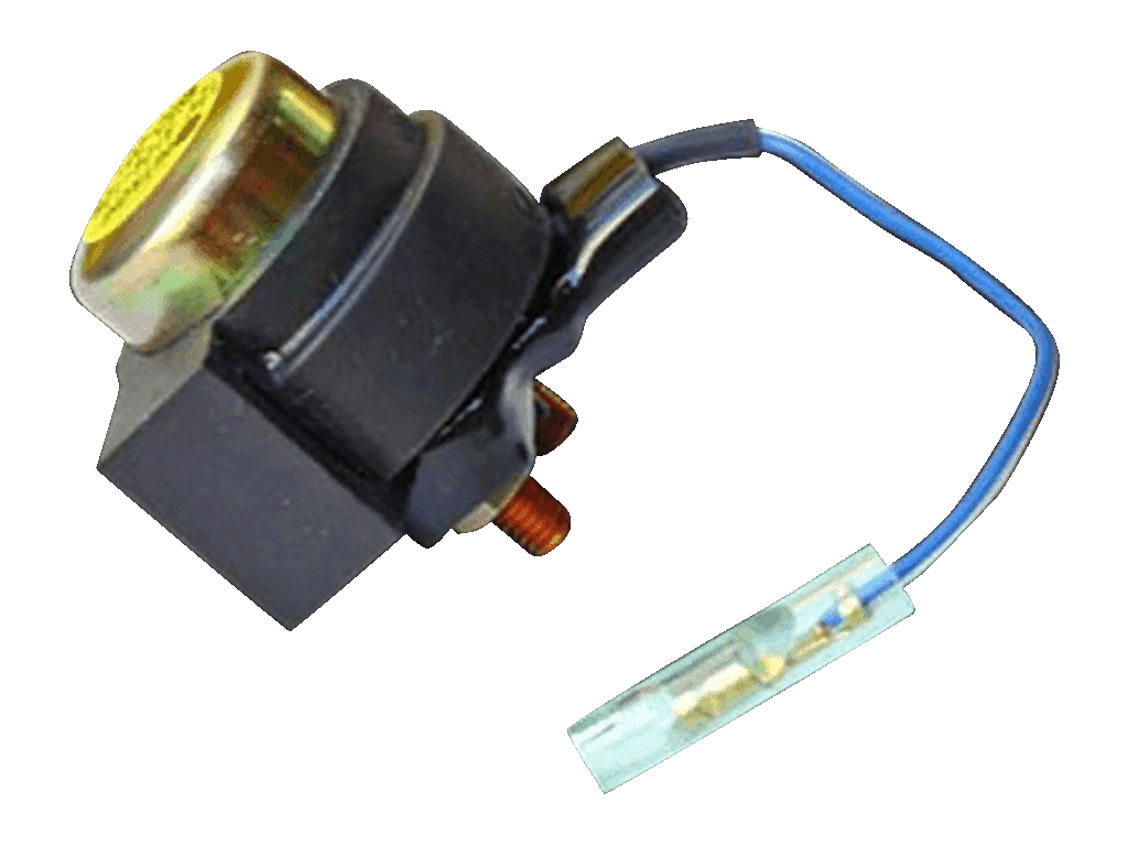 При срабатывании реле подает напряжение с аккумулятора на пусковой двигатель электростартера и происходит запуск двигателя. Так же на этом реле находятся предохранители, предотвращающие повреждения электростартера при неисправностях электроцепи мотоцикла, таких как короткое замыкание.