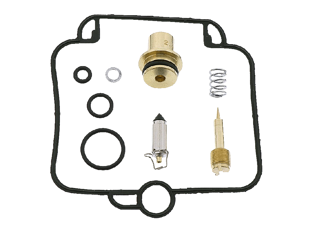 Ремонтный комплект карбюратора включает в себя в первую очередь прокладку поплавковой камеры, сальники и запорную иглу. Так же некоторые комплектуются винтами регулировки качества, жиклерами и колодцами для запорных игл.