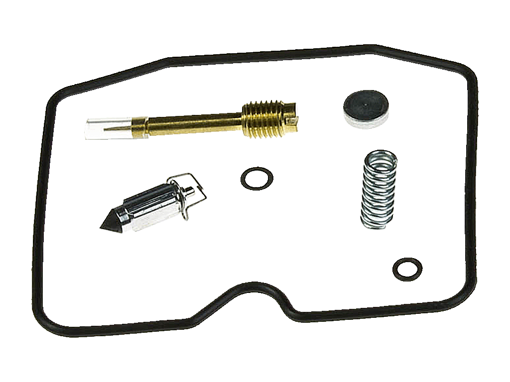 Ремонтный комплект карбюратора включает в себя в первую очередь прокладку поплавковой камеры, сальники и запорную иглу. Так же некоторые комплектуются винтами регулировки качества, жиклерами и колодцами для запорных игл.