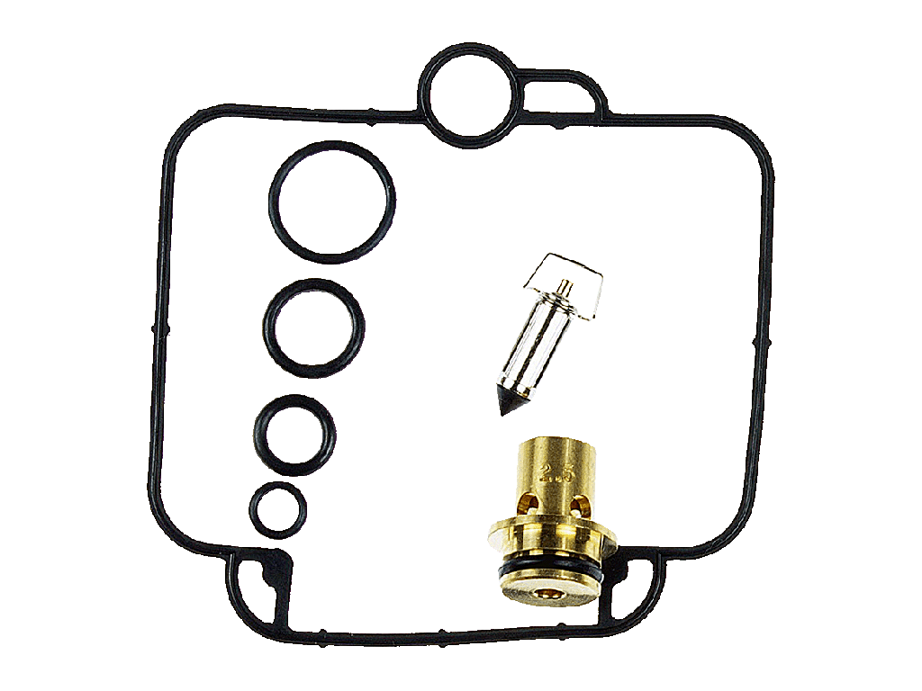 Ремонтный комплект карбюратора включает в себя в первую очередь прокладку поплавковой камеры, сальники и запорную иглу. Так же некоторые комплектуются винтами регулировки качества, жиклерами и колодцами для запорных игл.