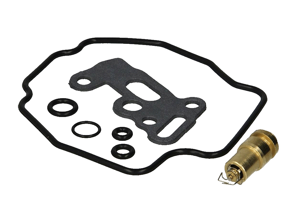 Ремонтный комплект карбюратора включает в себя в первую очередь прокладку поплавковой камеры, сальники и запорную иглу. Так же некоторые комплектуются винтами регулировки качества, жиклерами и колодцами для запорных игл.