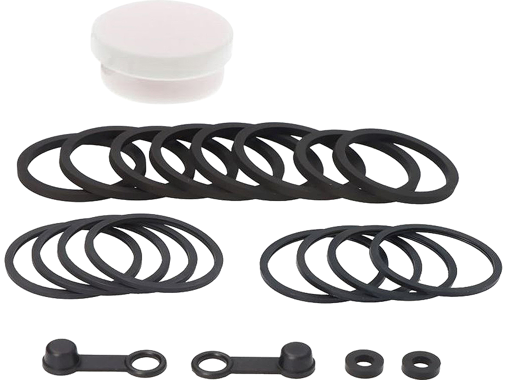Ремонтный комплект тормозных суппортов. Включает в себя резиновые уплотнители, которые стираются поршнем суппорта при эксплуатации, пыльники и колпачки ниппеля.