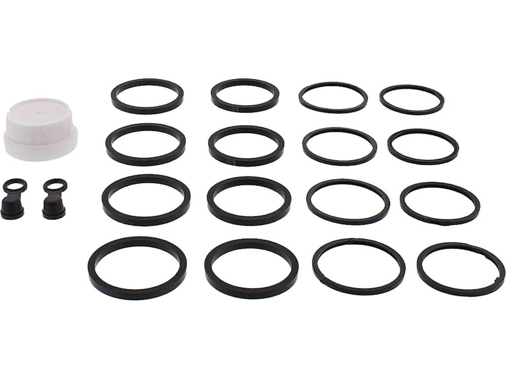Ремонтный комплект тормозных суппортов. Включает в себя резиновые уплотнители, которые стираются поршнем суппорта при эксплуатации, пыльники и колпачки ниппеля.