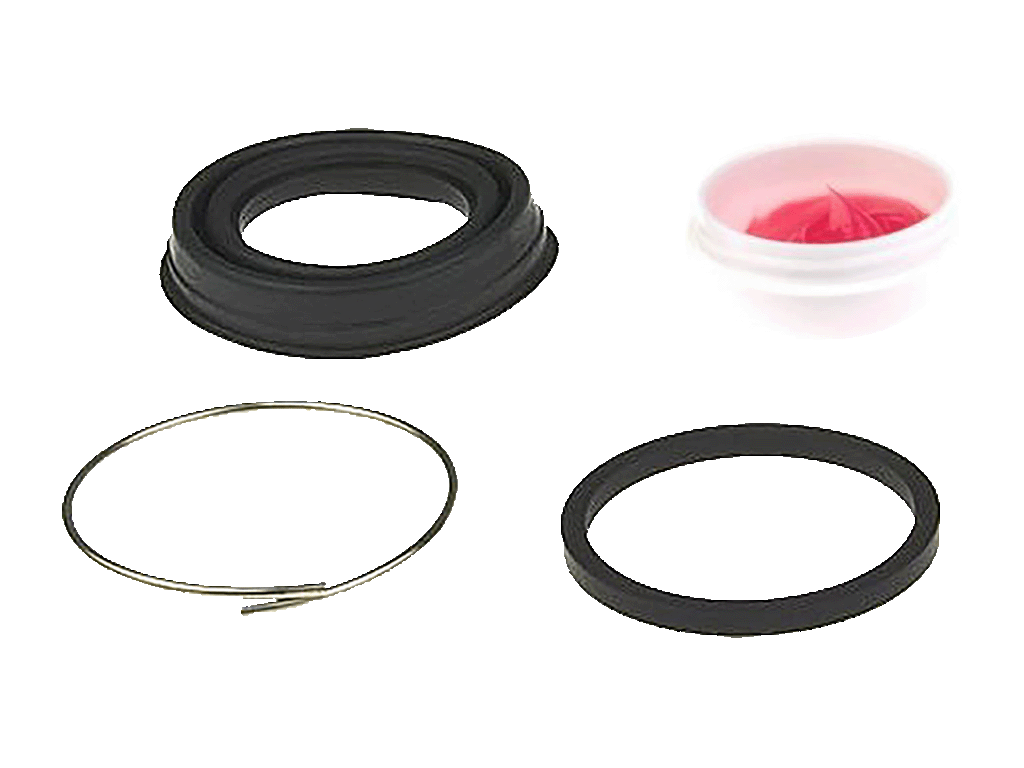 Ремонтный комплект тормозных суппортов. Включает в себя резиновые уплотнители, которые стираются поршнем суппорта при эксплуатации, пыльники и колпачки ниппеля.