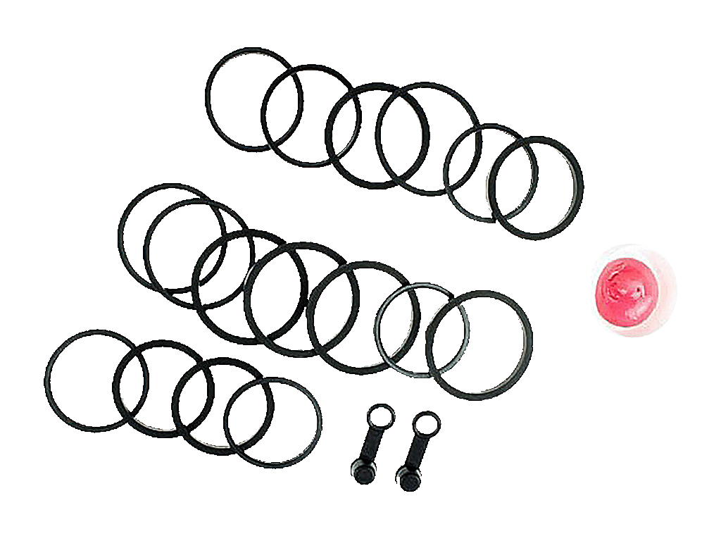 Ремонтный комплект тормозных суппортов. Включает в себя резиновые уплотнители, которые стираются поршнем суппорта при эксплуатации, пыльники и колпачки ниппеля.