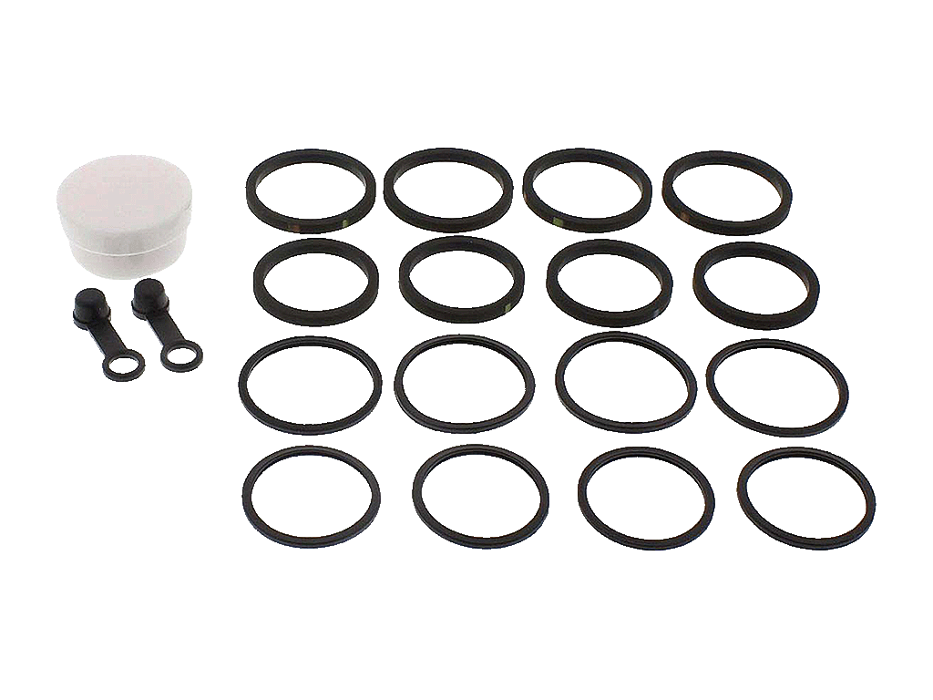 Ремонтный комплект тормозных суппортов. Включает в себя резиновые уплотнители, которые стираются поршнем суппорта при эксплуатации, пыльники и колпачки ниппеля.