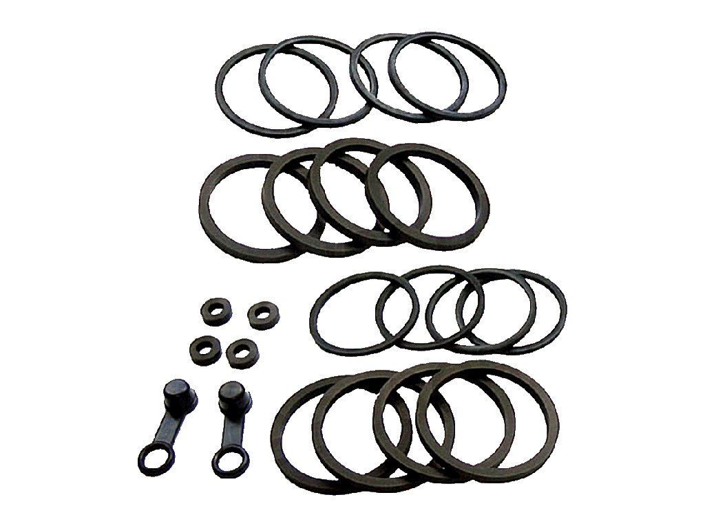 Ремонтный комплект тормозных суппортов. Включает в себя резиновые уплотнители, которые стираются поршнем суппорта при эксплуатации, пыльники и колпачки ниппеля.