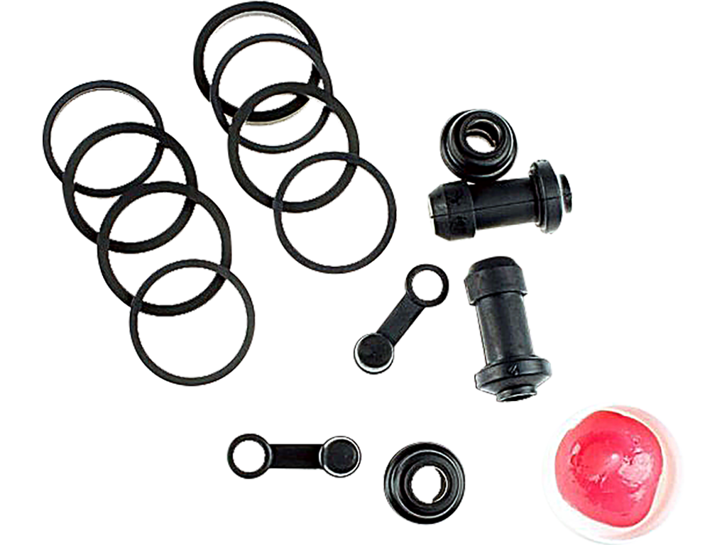 Ремонтный комплект тормозных суппортов. Включает в себя резиновые уплотнители, которые стираются поршнем суппорта при эксплуатации, пыльники и колпачки ниппеля.