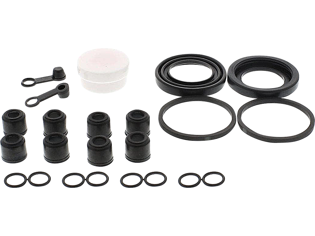 Ремонтный комплект тормозных суппортов. Включает в себя резиновые уплотнители, которые стираются поршнем суппорта при эксплуатации, пыльники и колпачки ниппеля.