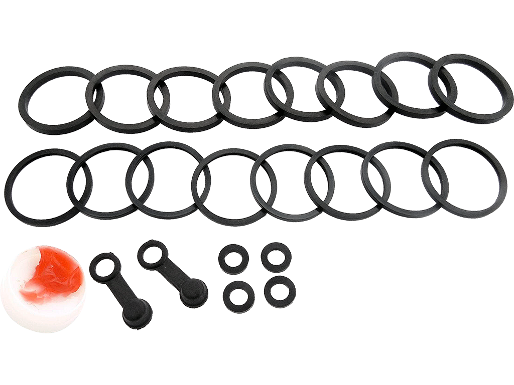 Ремонтный комплект тормозных суппортов. Включает в себя резиновые уплотнители, которые стираются поршнем суппорта при эксплуатации, пыльники и колпачки ниппеля.