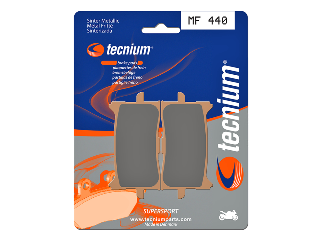 Tecnium - крупный бельгийский производитель тормозных систем, в том числе колодок. Он производит как продукцию под собственным брендом, так и OEM-детали для мотоциклов. Тормозные колодки Tecnium MF440 устанавливаются вместо штатных и работают в аналогичных условиях. Это универсальный продукт, пригодный для асфальта, грунта и спортивной езды. Поэтому он совместим с большим количеством мотоциклов, от туристических эндуро и спортбайков до скутеров и каферейсеров.