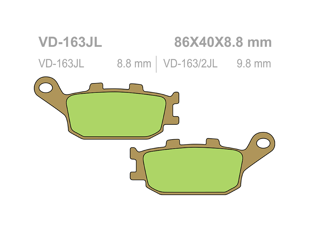 Технология спекания активного вещества примененная в тормозных колодках VESRAH позволяет эффективно использовать их на мототехнике с любым объемом двигателя и во всех дорожных и погодных условиях. Тормозные колодки демонстрируют ярко выраженный «укус» с самого начала торможения. Тормозные характеристики колодок остаются стабильными даже при интенсивном торможении, в условиях стремительно возрастающих температур.