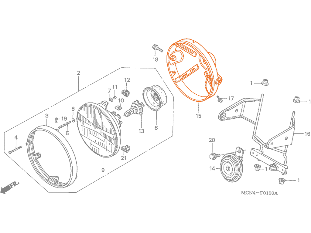 HONDA CB1000F 95-96 Корпус фары 61301-KN8-000
