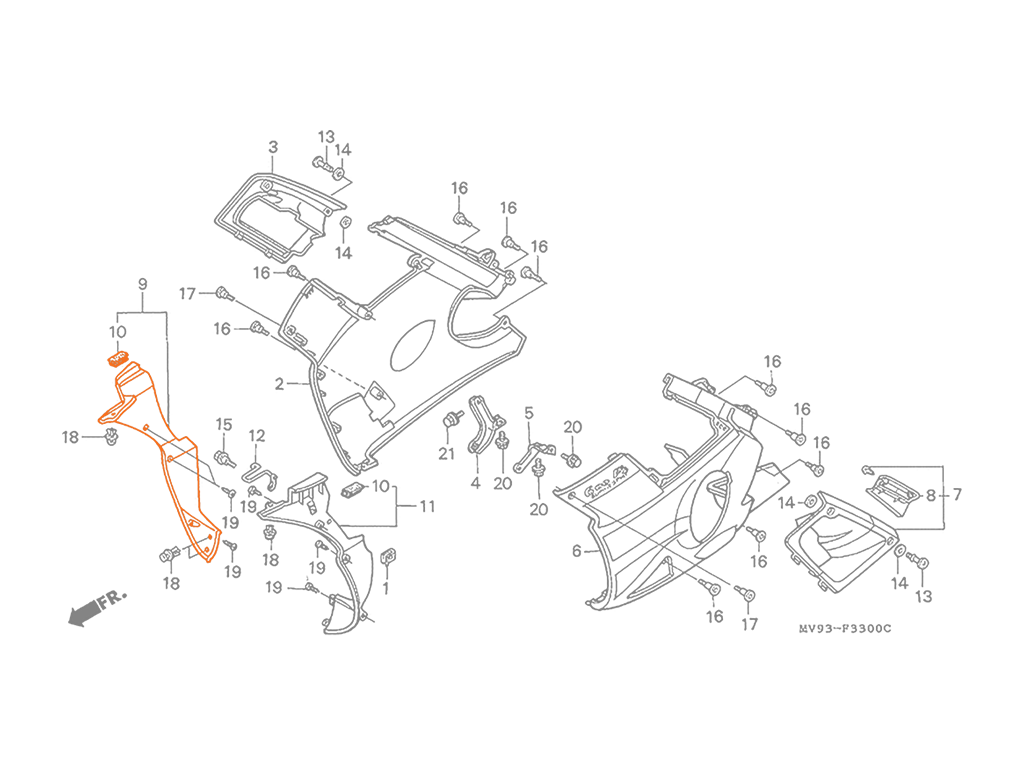 HONDA CBR600 Пластик нижний правый обтекатель 64360-MV9-000ZC
