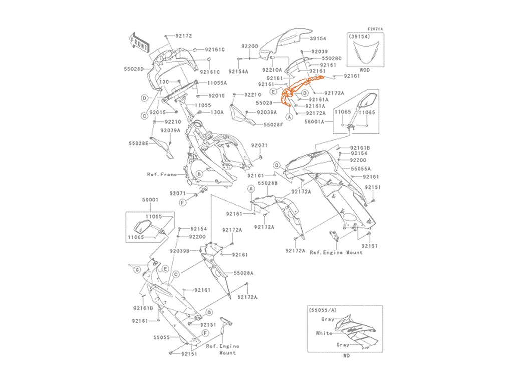 KAWASAKI Накладка переднего обтекателя 55028-0243
