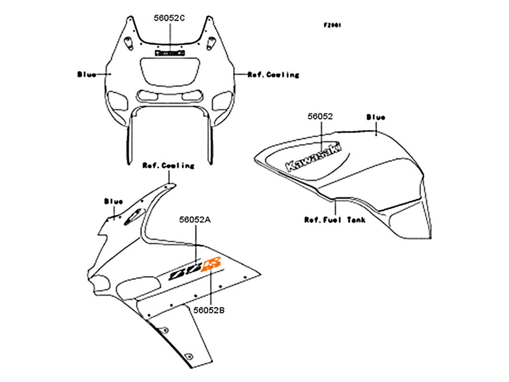 KAWASAKI ZZR400 Наклейка "400" 56052-0620